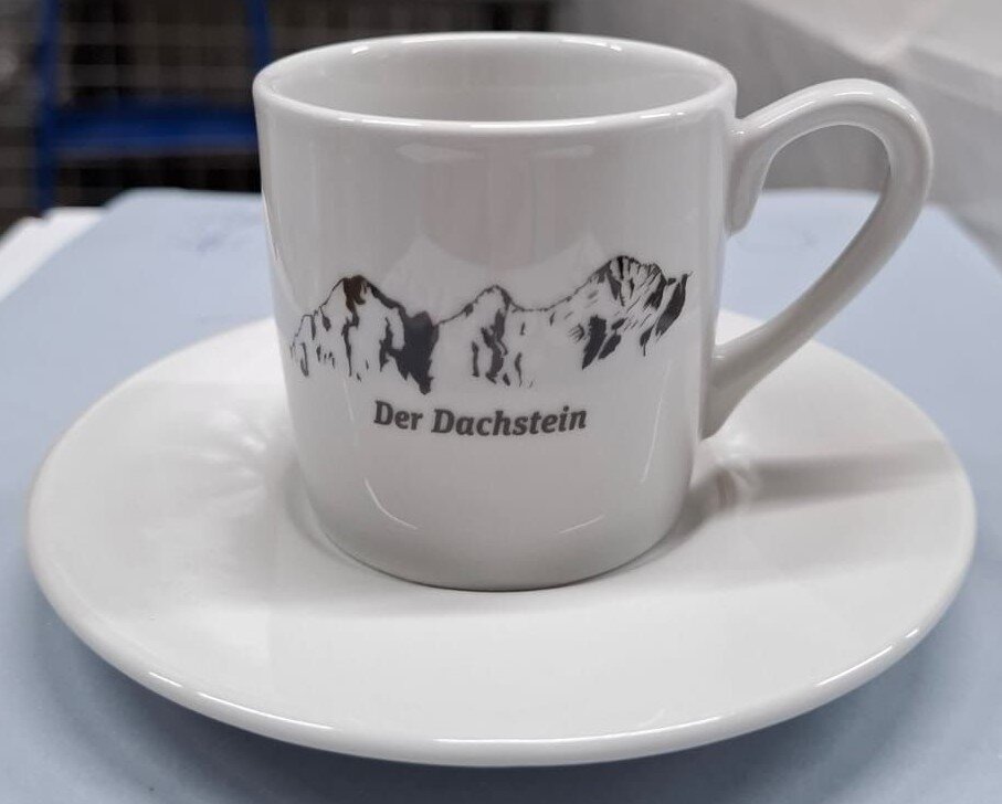 Das Highlight: Die Tasse ist mit einem detailreichen Bild des Dachstein-Dreigestirns bedruckt und bringt so ein Stück Bergwelt direkt auf Ihren Tisch.