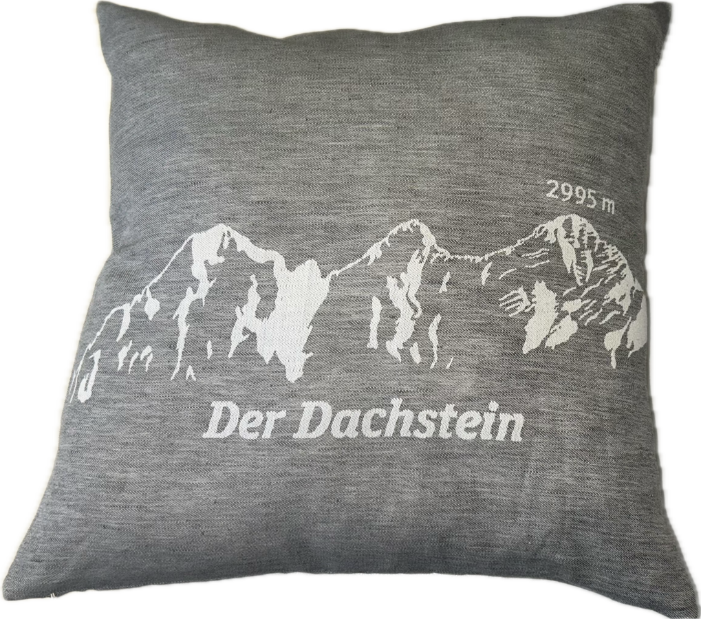 Der Kissenüberzug Made in Austria mit dem eingewebten Dachstein-Dreigestirn besticht durch seine hochwertige Verarbeitung in edler Atlasbindung. Diese sorgt nicht nur für eine geschmeidige Haptik, sondern reduziert auch die Knitterbildung. Gefertigt aus Halbleinen – einer robusten Mischung aus Leinen und Baumwolle – vereint er Langlebigkeit mit natürlichem Komfort.