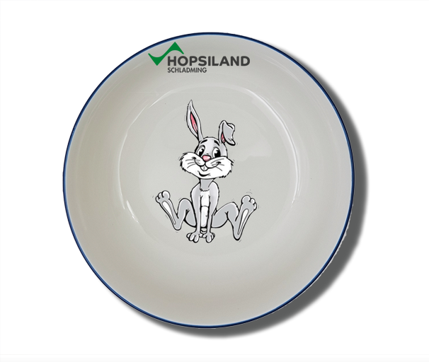 Innen strahlend weiß, außen in natürlichem Beige gehalten und verziert mit dem liebevollen Hopsi-Motiv – ein echtes Highlight auf jedem Tisch. Zudem ist die Schale spülmaschinengeeignet und dadurch besonders pflegeleicht.